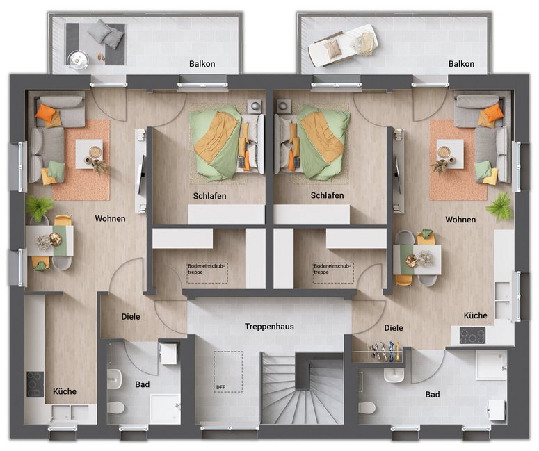 Ob zur Vermietung, für mehrere Generationen oder als gemeinsames Zuhause für Freunde: Das Quattro 287 bietet flexible Wohnkonzepte auf kompakter Fläche. Ideal für alle, die Wohnraum effizient nutzen und gleichzeitig in zukunftssichere Werte investieren wollen.